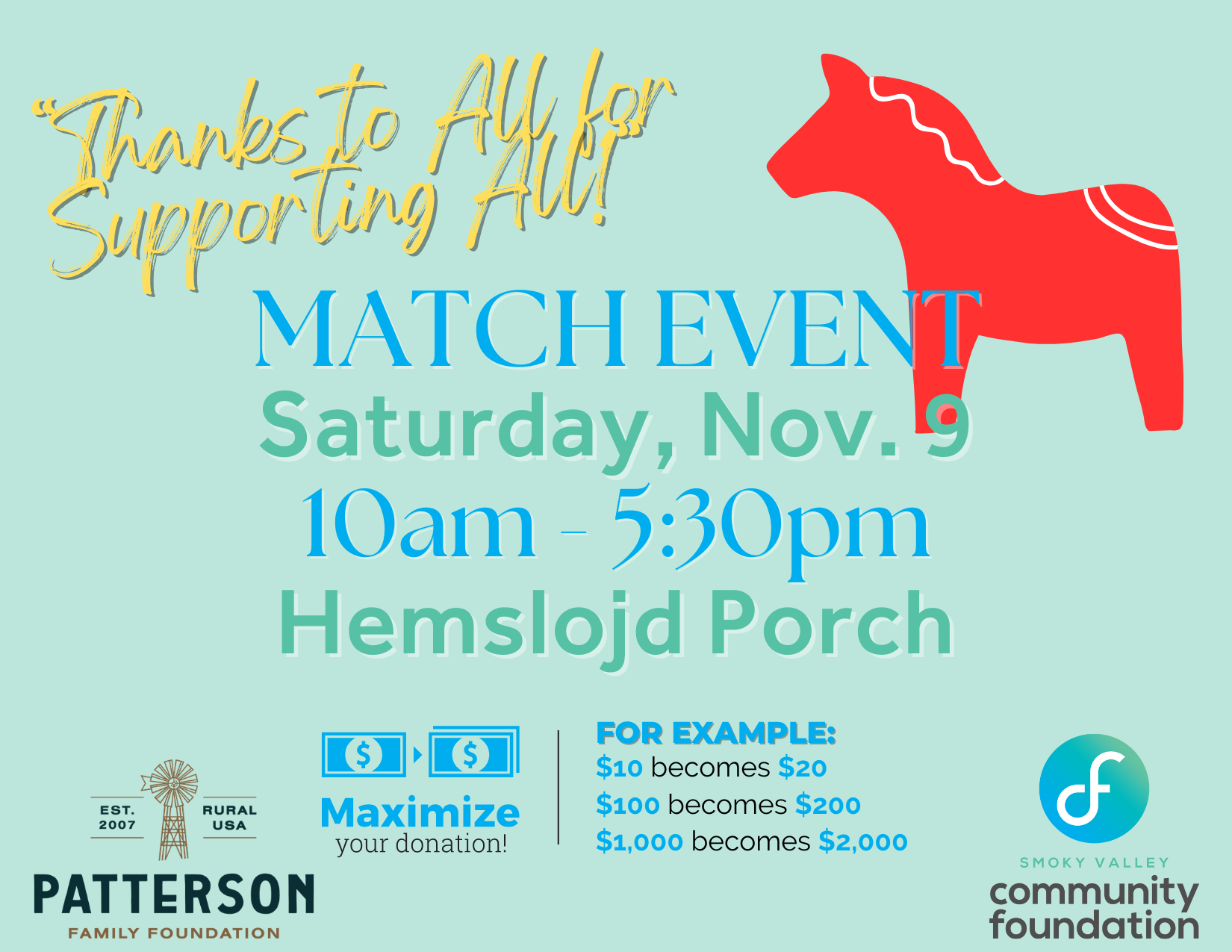 - Mona Peterson Community Service Scholarship, for graduating high school seniors from Smoky Valley High School, the Smoky Valley Home Educators or the Lindsborg Area Home Educators.